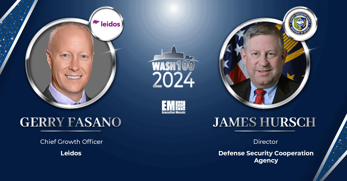 Executive Mosaic on Tuesday spotlighted Leidos Chief Growth Officer Gerry Fasano and Defense Security Cooperation Agency Director James Hursch in honor of their 2024 Wash100 wins.