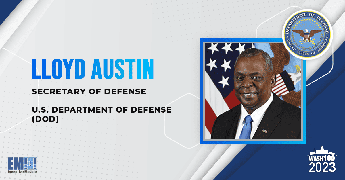 Executive Mosaic congratulates Lloyd Austin and the DOD organization for their selection to receive the 2023 Wash100 Award. Cast a vote now for your favorite GovCon champion at Wash100.com! Site visitors can select 10 executives for our Popular Vote rankings until April 28.