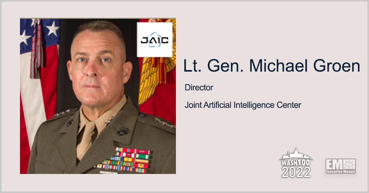 Executive Mosaic has featured Lt. Gen. Michael Groen, director of the Joint Artificial Intelligence Center, in the 2022 Wash100 class for his AI enablement vision.