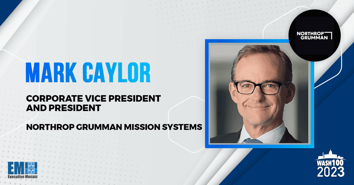 Executive Mosaic is honored to feature Mark Caylor, corporate vice president and president of Northrop Grumman’s mission systems sector, on the 2023 Wash100 list in recognition of his leadership in developing sensors, multidomain systems and other mission-critical technologies to support national security customers.