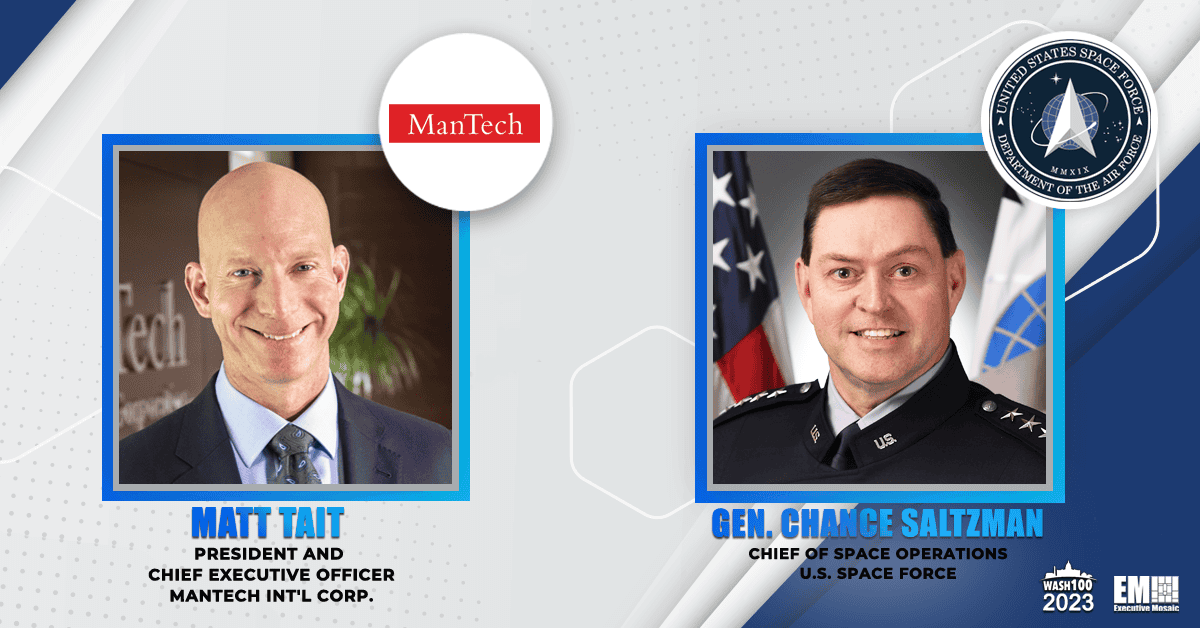 Executive Mosaic is excited to showcase the achievements of Mantech CEO & President Matt Tait and U.S. Space Force Chief of Space Operations Gen. Chance Saltzman, two first-time Wash100 Award inductees.