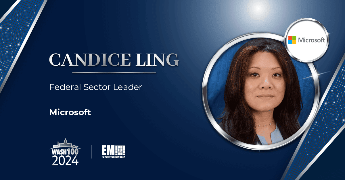 Candice Ling, federal sector leader at Microsoft, was inducted into Executive Mosaic's 2024 roster of Wash100 awardees for driving innovation in artificial intelligence and other emerging technologies.