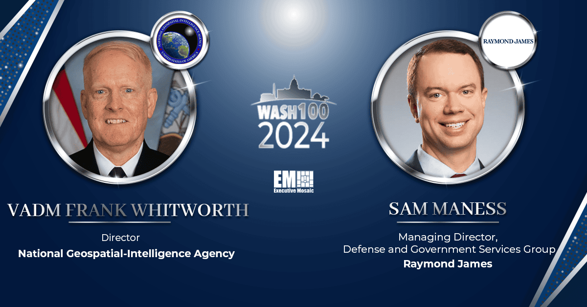 On Thursday, Executive Mosaic highlighted the accomplishments of two 2024 Wash100 Award winners: National Geospatial-Intelligence Agency Director Vice Adm. Frank Whitworth and Sam Maness, managing director of the Defense and Government Services group at Raymond James.