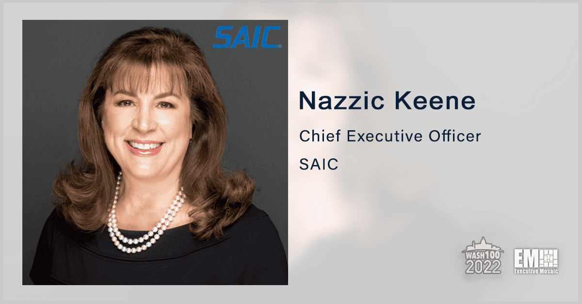 “Nazzic Keene rose up from the COO role at SAIC to CEO less than 3 years ago and has proven to be the perfect choice to command the $7 billion integration, design, engineering, digital transformation and cyber powerhouse with her visionary leadership style,” commented Jim Garrettson, CEO of Executive Mosaic and founder of the prestigious Wash100 Award.