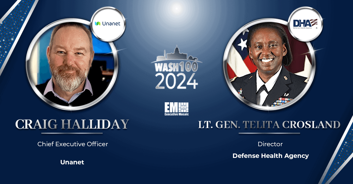 On Friday, Executive Mosaic illuminated the accomplishments of Unanet CEO Craig Halliday and Defense Health Agency Director Lt. Gen. Telita Crosland in honor of their 2024 Wash100 Award wins.