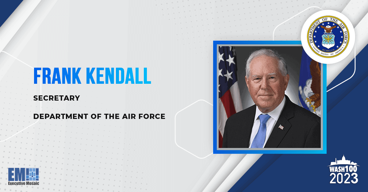 Executive Mosaic is honored to announce Air Force Secretary Frank Kendall as a winner of the 2023 Wash100 Award for driving strategic initiatives for the Air and Space Forces to improve their abilities to project power.