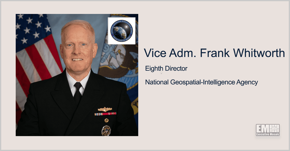 Executive Mosaic has included Vice Adm. Frank Whitworth, incoming director of the National Geospatial-Intelligence Agency, in the 2022 class of Wash100 Award recipients in recognition of his dedicated military service and anticipated intelligence leadership while serving as the eighth NGA director. The award represents Whitworth's first Wash100 selection. Visit GovCon Wire to read his full profile.