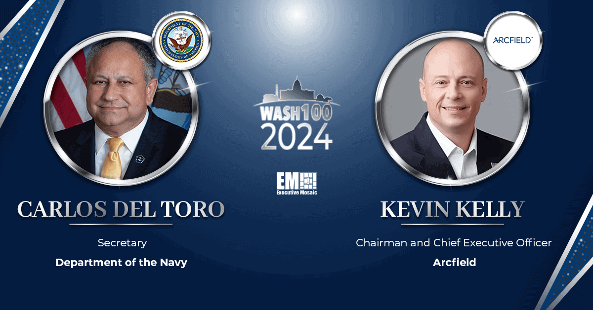Executive Mosaic recognized U.S. Navy Secretary Carlos Del Toro and Arcfield Chairman and CEO Kevin Kelly as 2024 Wash100 Award winners on Monday.