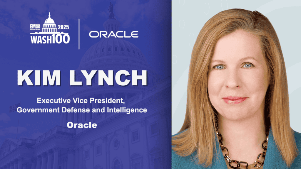 Commenting on Lynch’s latest win, Jim Garrettson, CEO of Executive Mosaic and founder of the Wash100 Award, said, “In her second year as EVP at Oracle, Kim’s has continued to stabilize and grow key agency relationships through personal involvement and her demonstration of leadership by example. Kim aggressively leads Oracle’s biggest public sector cloud initiatives, driving major advancements in government IT modernization. Under her leadership, Oracle is, among many other impressive initiatives, overhauling the Army’s personnel and pay system, expanding its electronic health records work with the VA and rolling out next-gen EHR solutions to agencies nationwide. These efforts are more impressive when taken as part of the whole and including Oracle’s deal to provide cloud services for the U.S. Courts, and it’s clear she’s shaping the future of government tech. A well-earned Wash100 win for a leader making real change happen and demonstrate an ability to manage a complex set of contracts across a wide array of agencies.”