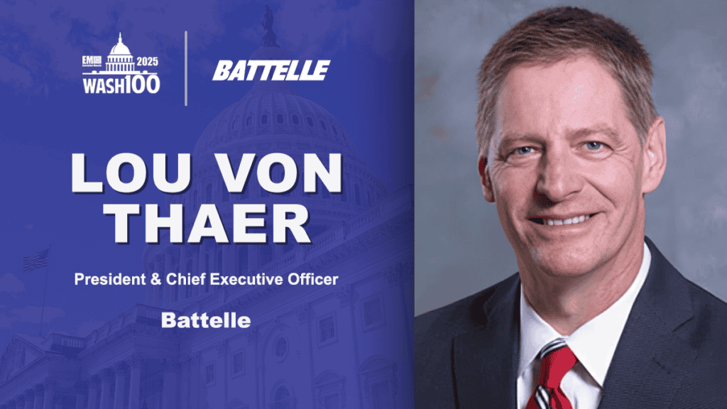Executive Mosaic is proud to announce the selection of Lou Von Thaer, the president and CEO of Battelle, as a winner of the 2025 Wash100 Award.