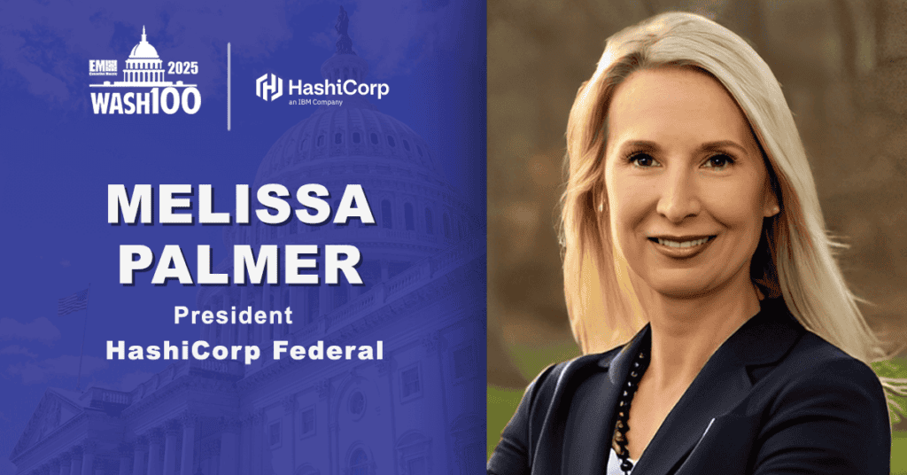 Executive Mosaic is honored to announce the selection of Melissa Palmer, president of HashiCorp Federal, as a 2025 Wash100 Award recipient for her leadership in driving government digital transformation and security through the adoption of multicloud platforms and zero trust approach.