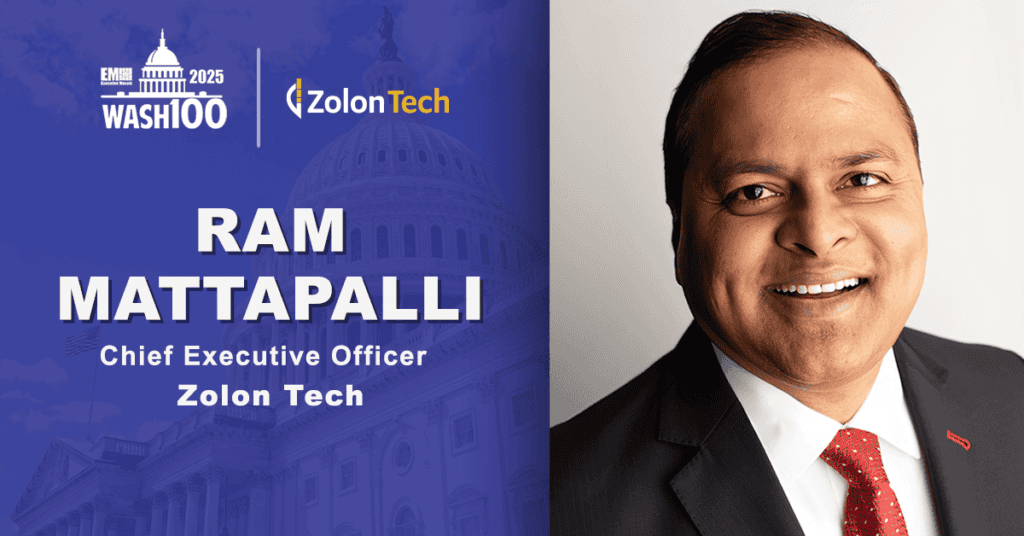 Executive Mosaic is honored to announce that Ram Mattapalli, CEO and founder of Zolon Tech, has won the 2025 Wash100 Award for the first time. Mattapalli earned his first Wash100 Award for his long-term leadership in driving Zolon Tech’s growth since its founding.