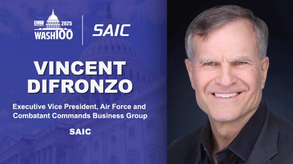 Regarding DiFronzo’s latest Wash100 win, Jim Garrettson, CEO of Executive Mosaic and founder of the Wash100 Award, said, “Vinnie’s second Wash100 win is a well-earned nod to his leadership at SAIC and deep-rooted commitment to national security. An Air Force veteran, he brings firsthand mission understanding to his role overseeing Air Force and COCOM programs at SAIC. Whether driving IT modernization for NORAD and USNORTHCOM, steering SAIC’s defense growth, or shaping industry dialogue through the Potomac Officers Club and 4×24 Leadership Group, Vinnie is a great collaborator in the GovCon community.”
